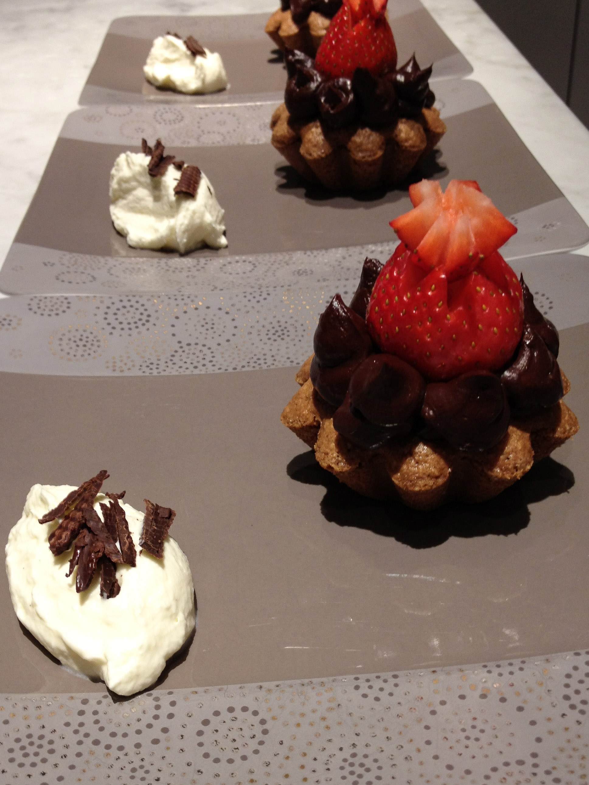 - Pour some sauce onto a plate, arrange the sliced strawberries and ice cream on top.